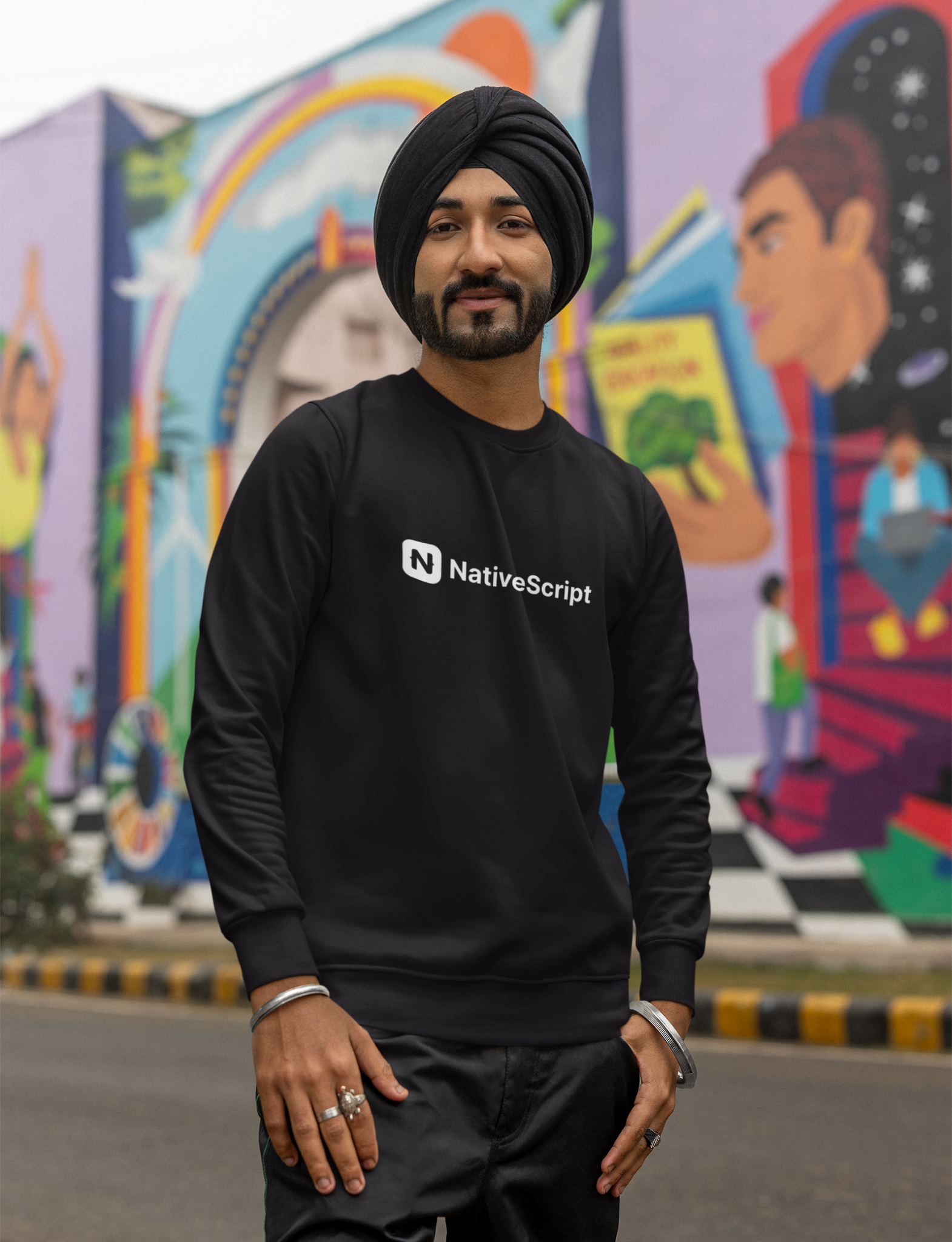 Stay cozy and stylish in our crewneck sweatshirt featuring the NativeScript logo. Available in classic black or crisp white, this sweatshirt is perfect for any casual occasion. Show off your love for NativeScript with this must-have piece for your wardrobe. Order yours today!